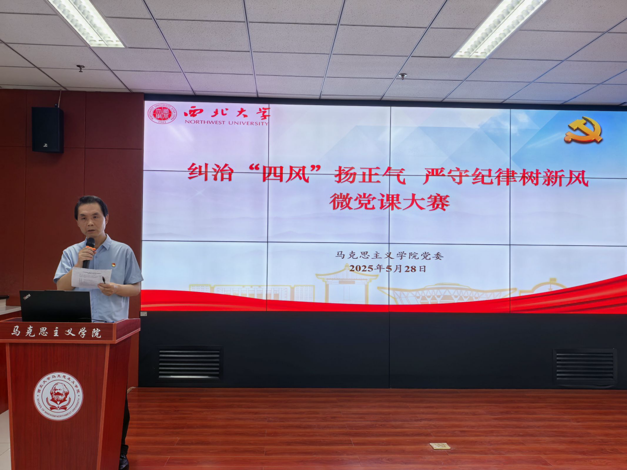 5月28日下午,我院在学术报告厅举办“纠治‘四风’扬正气,严守纪律树新风”微党课大赛。院党委书记韩凯峰,院长何博,院党委副书记邵平,中国近现代史纲要教研部主任苟昭赟和学院党务工作人员担任比赛评委。学院2023级、2024级硕士研究生观看了比赛。