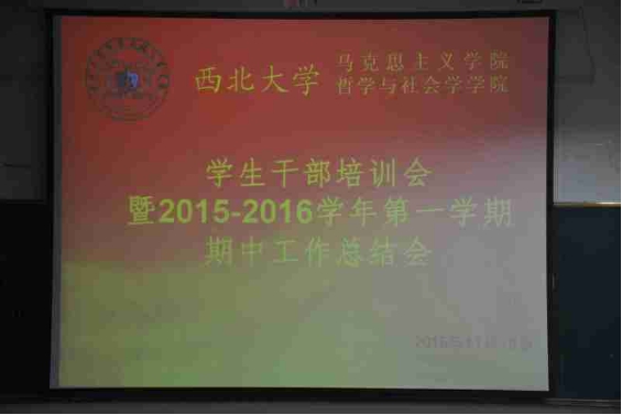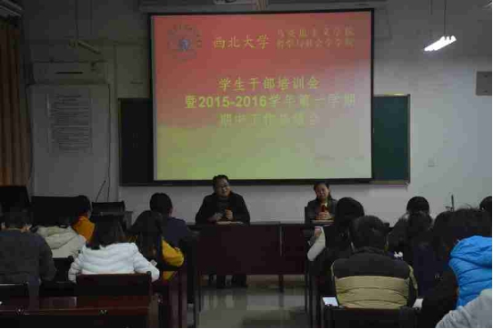 为了干部培训会暨期中学生工作总结会。院团委书记刘建波老师和辅导员李鑫老师出席了本次大会并发表了讲话,我院研会和本科生学生会主席团及各部部长参加了本次会议。