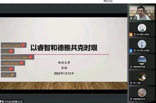 为凝聚青春力量,助力疫情防控战早日取得胜利,由西北大学团委和西安航空学院团委共同策划推出的“团团在一起·青年讲师团第二讲——以睿智和德雅共克时艰”主题讲座于1月12日晚七点以线上方式展开。本次讲座由必赢242net官网副教授齐钊老师主讲,我院青马班全体同学参加此次线上讲座。
