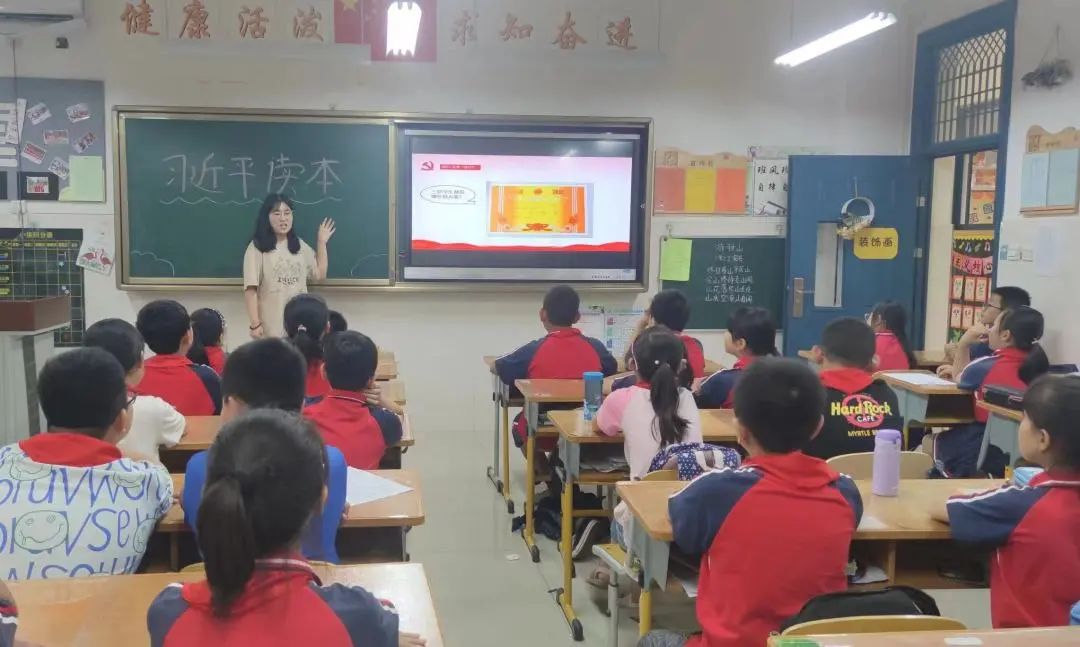 张依芳以《美丽中国是我的家》为主题,通过播放《美丽中国》自然风光的视频,使学生在领略祖国大好河山的过程中燃起对祖国的热爱之情与民族自信。在学习国徽、国旗、国歌的环节中,同学们认识到爱国绝不能停留在口号上,而是要把自己的理想同祖国的前途、把自己的命运同民族命运紧密联系在一起,奉献青春,绽放光彩。