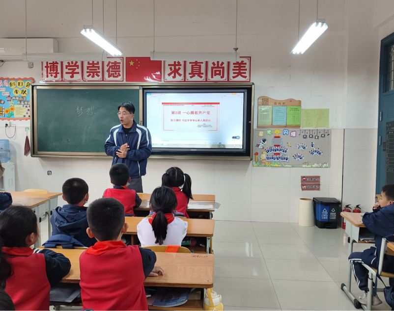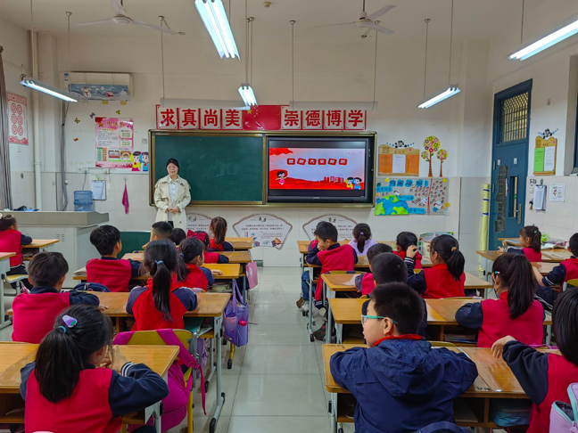 周南以《习近平爷爷心系人民群众》为题,通过讲解习近平总书记在基层鲜为人知的故事,了解以习近平总书记为代表的中国共产党人始终不忘初心,全心全意为人民服务的精神,增强同学们对中国共产党的热爱之情,做合格的社会主义建设者和接班人。