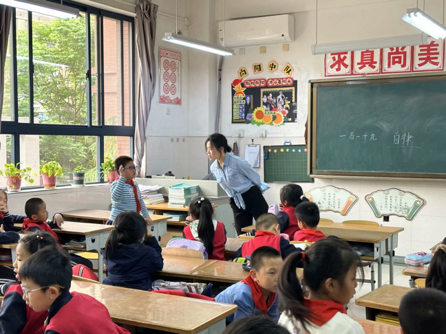 严文昭以《新时代新征程》为主题,分别从党的二十大、争做新时代好队员两方面展开,通过提问党的二十大相关内容引发了同学们的深入思考,并带领全体同学一起阅读习近平总书记的寄语,使同学们感受到了习近平总书记对孩子们的深切关怀,激励同学们立志做为国奉献的人。