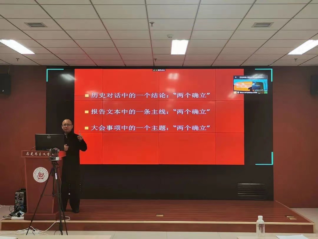 10月16日上午,马克思主义学院组织全体师生集中收听收看习近平总书记在中国共产党第二十次全国代表大会上的报告,并进行交流学习。学院结合专业特色,举办“青春献礼二十大 强国有我新征程”学习宣传贯彻党的二十大精神专题讲座。11月1日,付粉鸽教授为学院学子讲授《中国式现代化的本质、特征和意义》,从党的二十大报告主题及逻辑结构讲解了中国式现代化的本质内涵和本质要求,并从专业角度对同学们如何学好党的二十大精神进行了指导。11月4日,何博教授为学院学子讲授《全面深入领会党的二十大精神——文本要义解读与研究热点分析》,对二十大报告的基本框架结构和《党章》的基本内容及结构进行了分析讲解,强调了在学习党的二十大精神时要从前瞻性思考、全局性谋划、整体性推进等三方面把握问题本质,使同学们对二十大报告文本要义的解读有了更加全面和系统地认识。