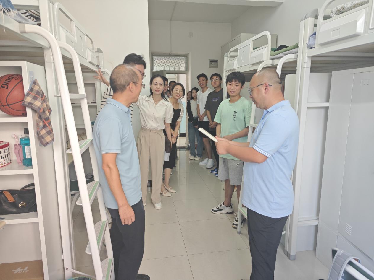 8月30日上午,学院党委书记韩凯峰、院长何博、党委副书记邵平及辅导员刘娟一行来到学生公寓看望我院2023级新生。