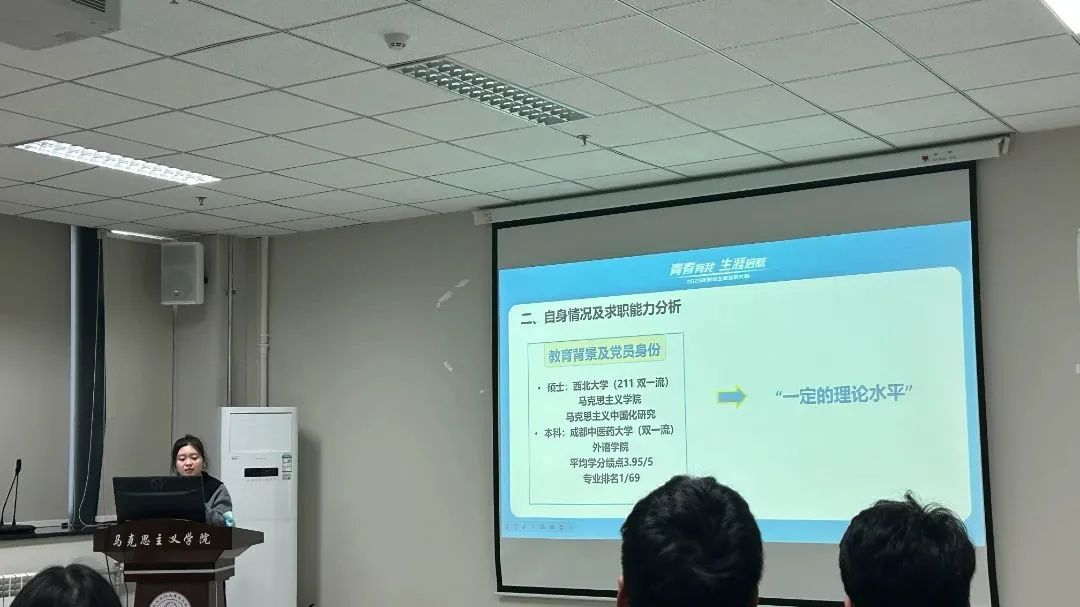 11月15日下午,我院于西学楼1106会议室举办首届全国大学生职业规划大赛院级初赛,共有16位硕士研究生入围。比赛由2022级马克思主义中国化研究专业姚驰主持,我院19名学生担任评委。