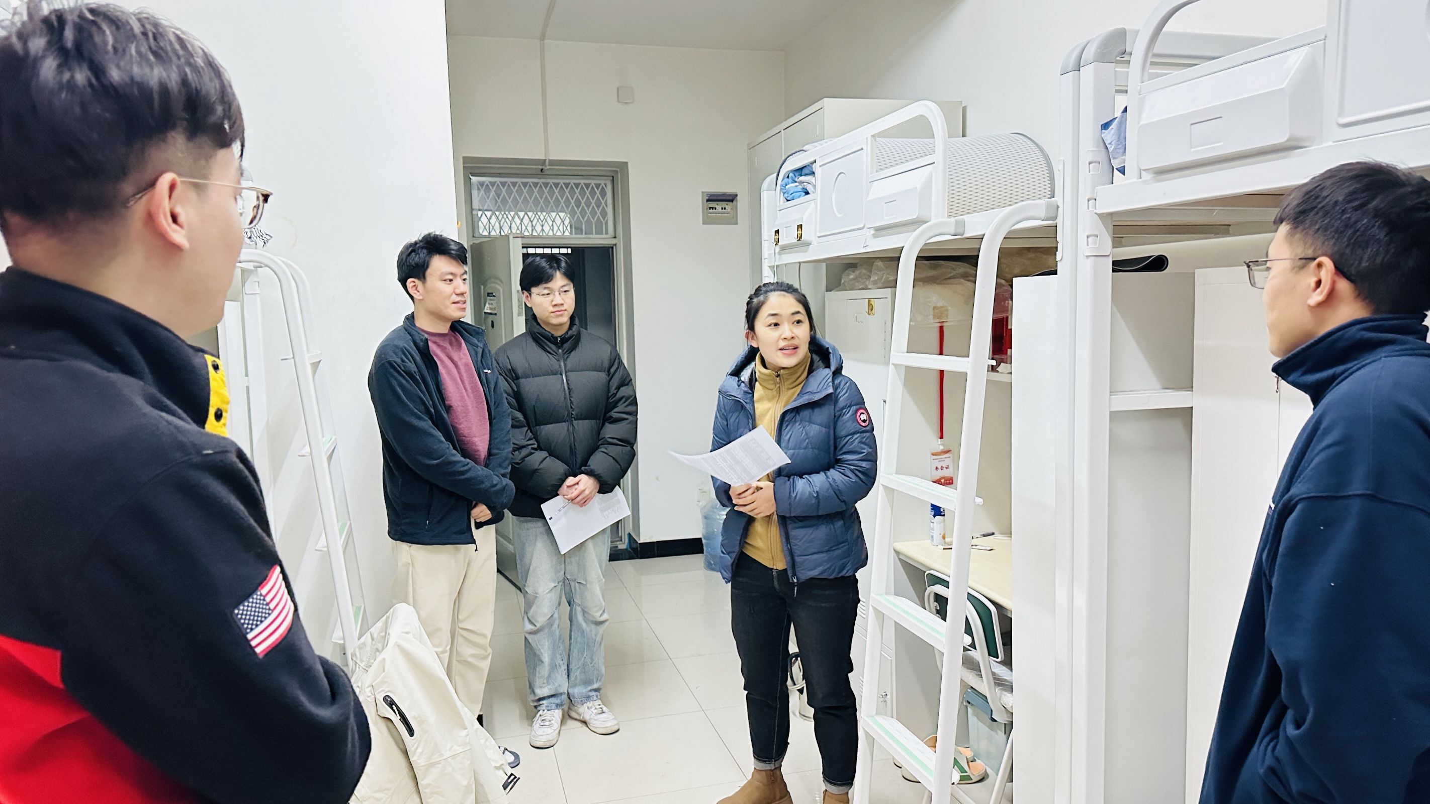 在走访过程中,老师们与同学们进行了亲切的交流,详细地了解了同学们的假期生活状况和返校适应情况,建议同学们要尽快调整学习状态,科学规划、保质保量的完成新学期的学习任务。同时,叮嘱同学们要严格遵守学校宿舍安全管理规定,保持宿舍卫生干净整洁,营造一个舒适整洁的学习生活环境,以更加饱满的精神状态迎接新学期的学习与生活。