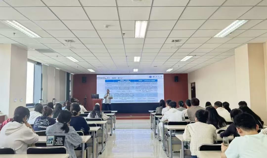 李晓杰以“挑战筑梦,科创报国”为主题,围绕大赛简介、赛制解读和申报规则、历年优秀作品展示、国赛专家建议四个方面作了详细的介绍。首先,他重点为同学们讲解了“挑战杯”大学生课外学术科技作品竞赛与“挑战杯”大学生创业计划竞赛的区别。同时,他对大赛参赛对象、参赛类别、选题、团队组成、评分要点等做了详细的解读。最后,他向同学们展示了我校及其他高校挑战杯往届优秀作品,鼓励同学们多多关注社会热点,发现社会问题,灵活运用所学知识深入调查研究。