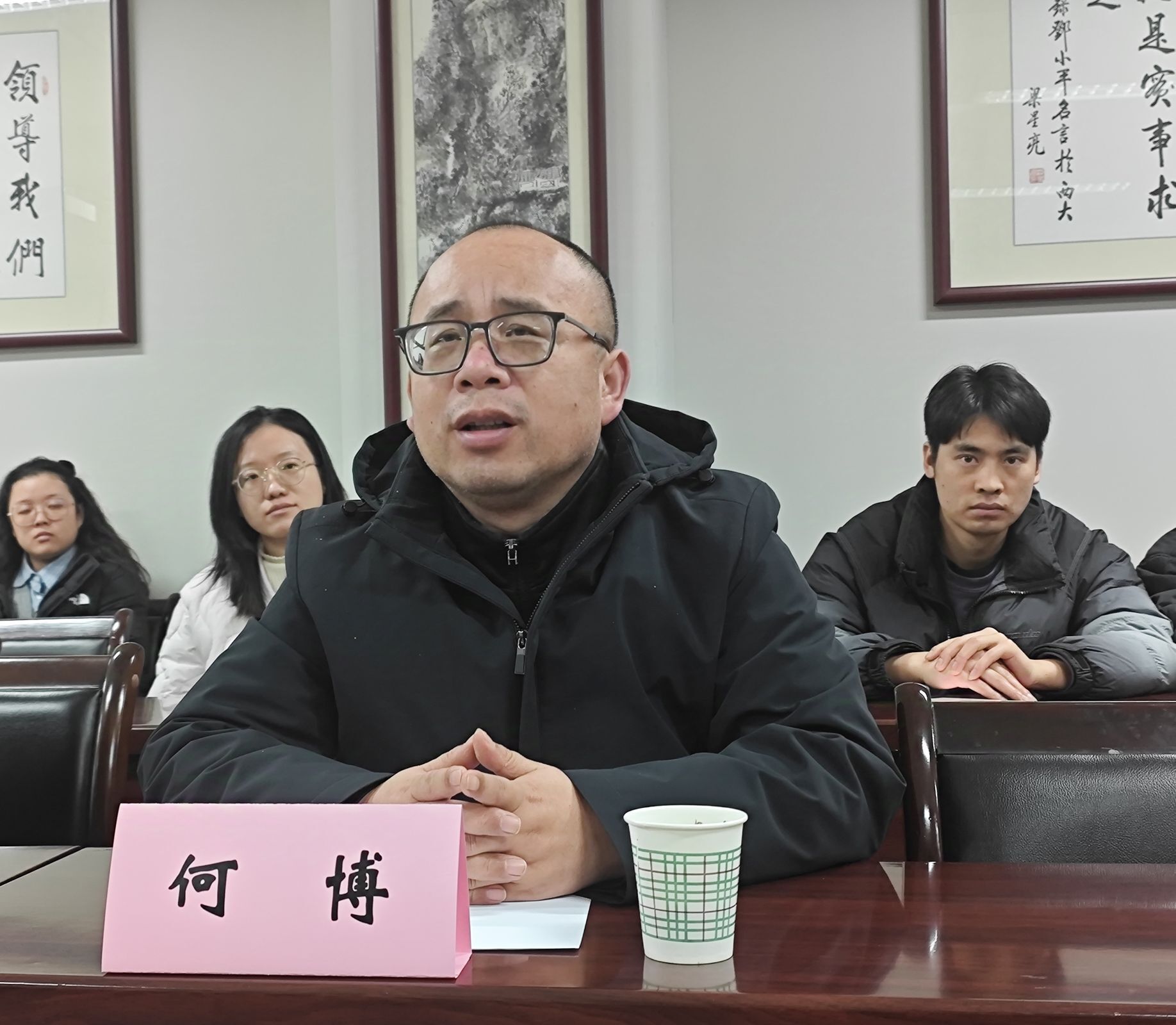 何博院长介绍了我院的基本情况。他谈到,学院在师资力量、人才培养、科研成果方面有着深厚的积累,并在近年来取得了良好发展,表示学院将积极鼓励毕业生高质量充分就业。同时,他表示学院将与安康学院和商洛学院马克主义学院加强交流合作。