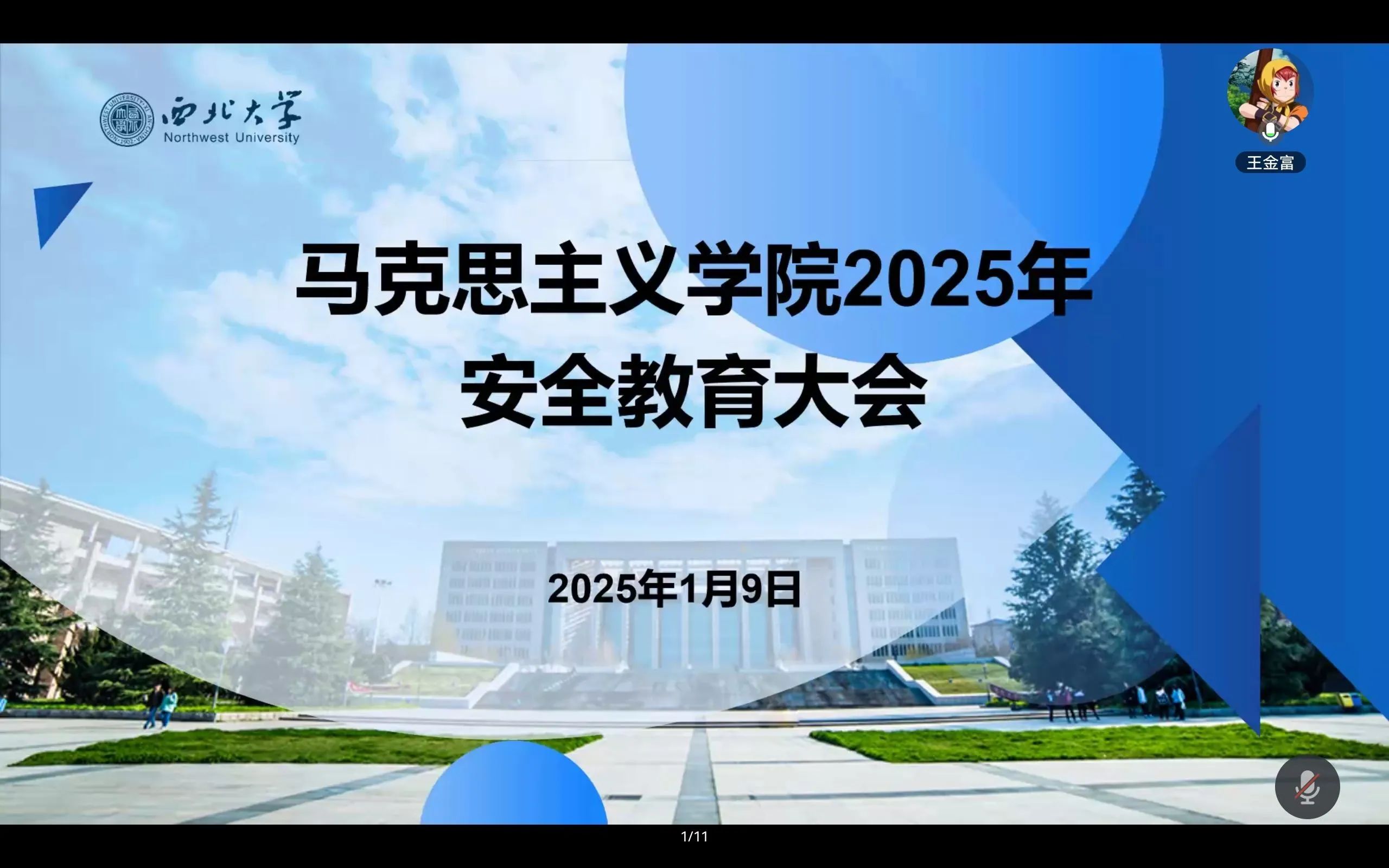 1月9日下午,我院召开安全教育大会线上会议。我院全体研究生参与此次会议,会议由我院学生兼职辅导员王金富主持。