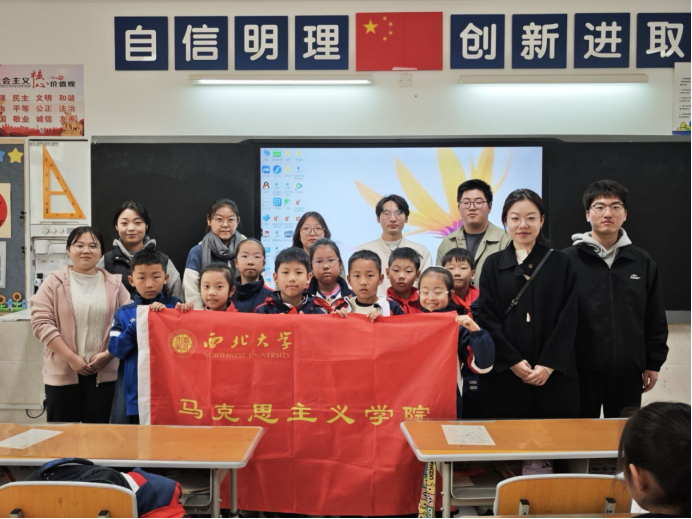 3月28日,我院红桅杆思政理论学习社团在西安航天城第四小学,以《习近平新时代中国特色社会主义思想学生读本》(小学低年级)为主要内容,为三年级的小学生讲授思政课。主讲人是来自2023级和2024级思想政治教育、马克思主义中国化研究、中国近现代史基本问题研究专业的8名硕士研究生。