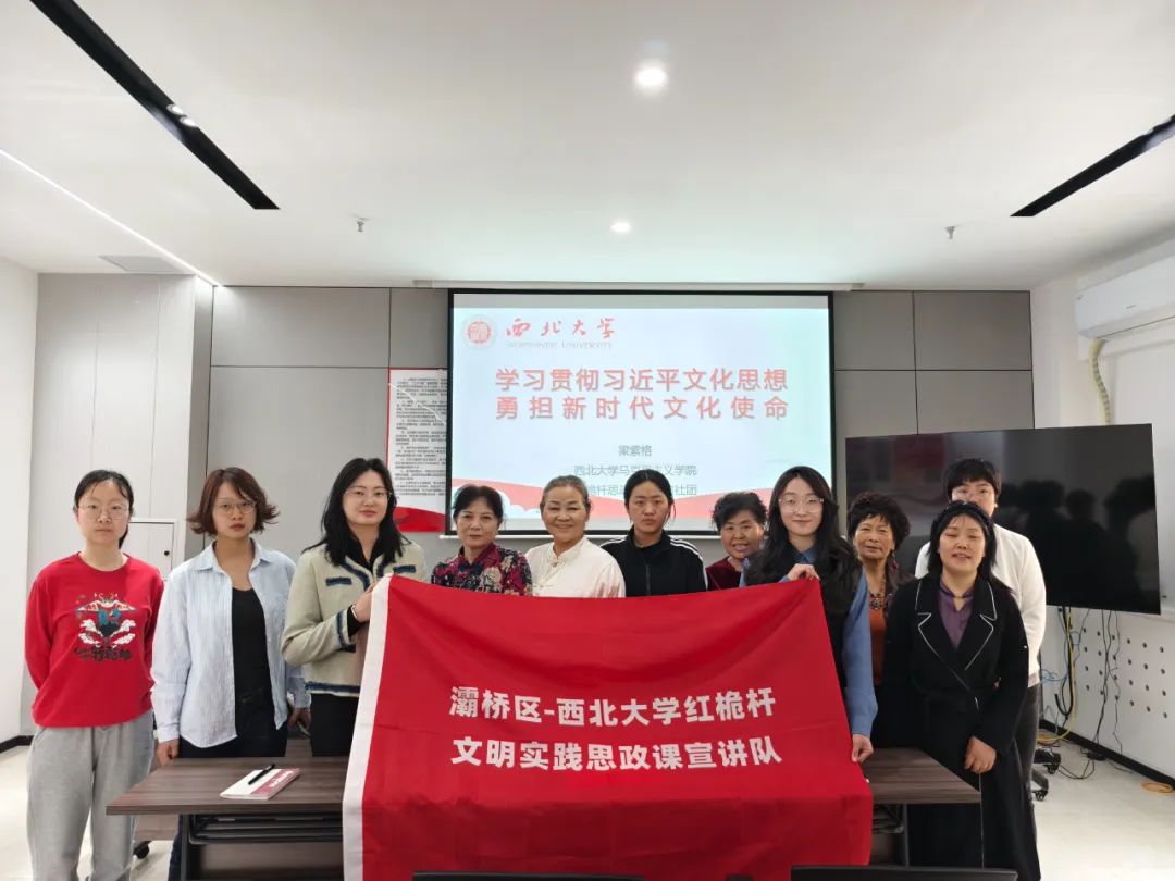 4月9日,我院红桅杆思政理论学习社团前往灞桥区洪庆街道悦湾社区为基层的干部群众开展理论宣讲活动。本次主讲人为2024级马克思主义中国化研究、思想政治教育专业的硕士研究生梁紫格和王翠玲。