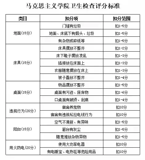 6月2日晚上,我院开展卫生安全检查,标准如下:
