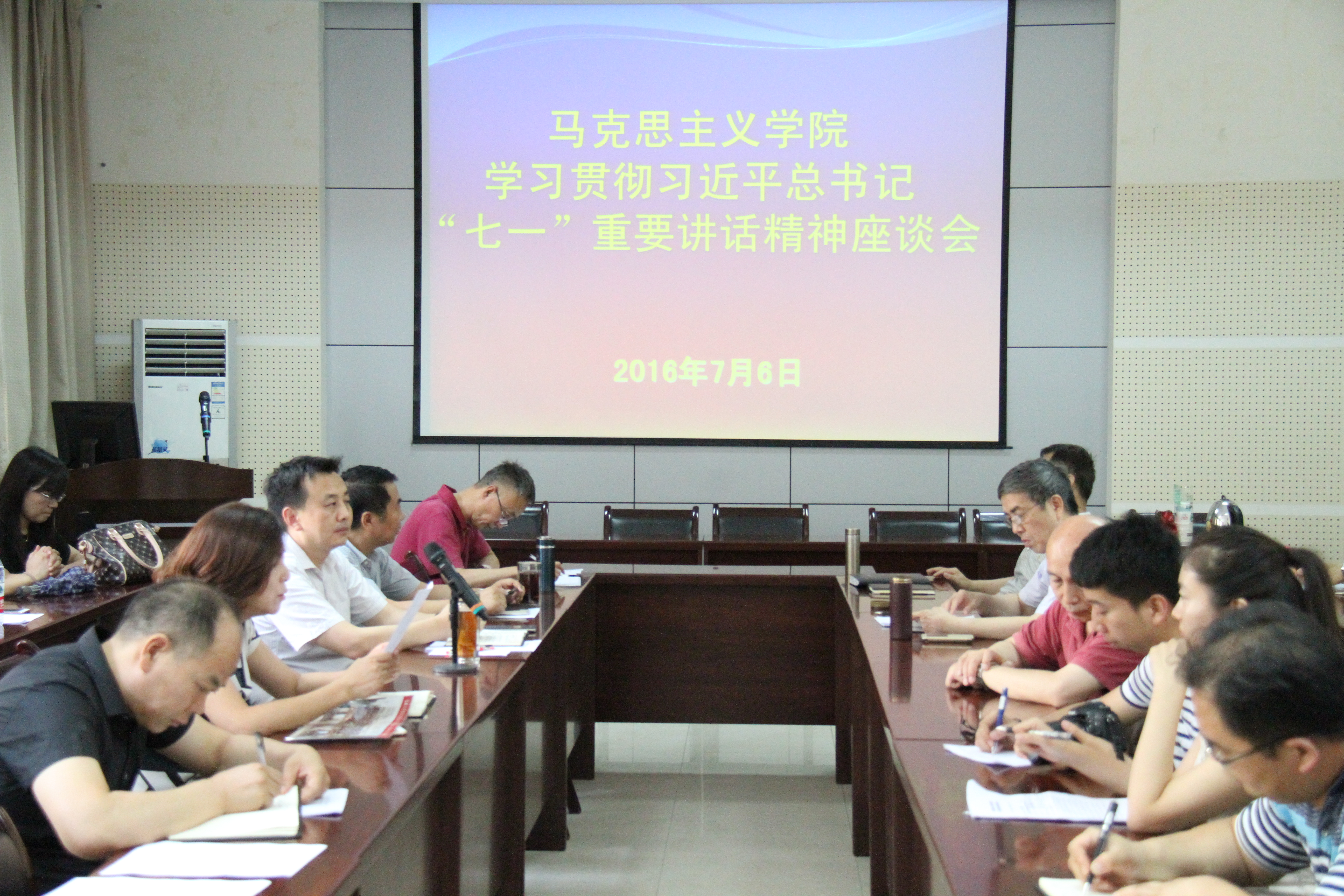 7月6日下午,马克思主义学院党委组织召开学习贯彻习近平总书记“七一”重要讲话精神座谈会,在院的54名教职工参加了此次会议,此次会议由学院党委书记马朝琦主持。
