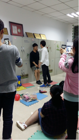 之后,大家进行了猜数字的游戏,输的一方要遭到真心话大冒险的惩罚哦!看看下面这对家伙,高鹏和汪鑫两位同学友情出演了一场壁咚大戏哦,大家看的开心吗~~~(听说高鹏这小子演戏之前吃了韭菜馅饺子就了蒜吃还吃了块榴莲...X ﹏ X)
