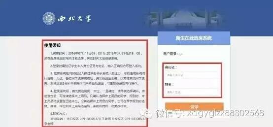访问http://ihome.nwu.edu.cn/zzxc/ 进入选床登录界面,仔细阅读左侧使用须知,输入新生的身份证号和姓名登录进入选床界面(谷歌、360、搜狗、QQ浏览器都可以,必须是急速模式)