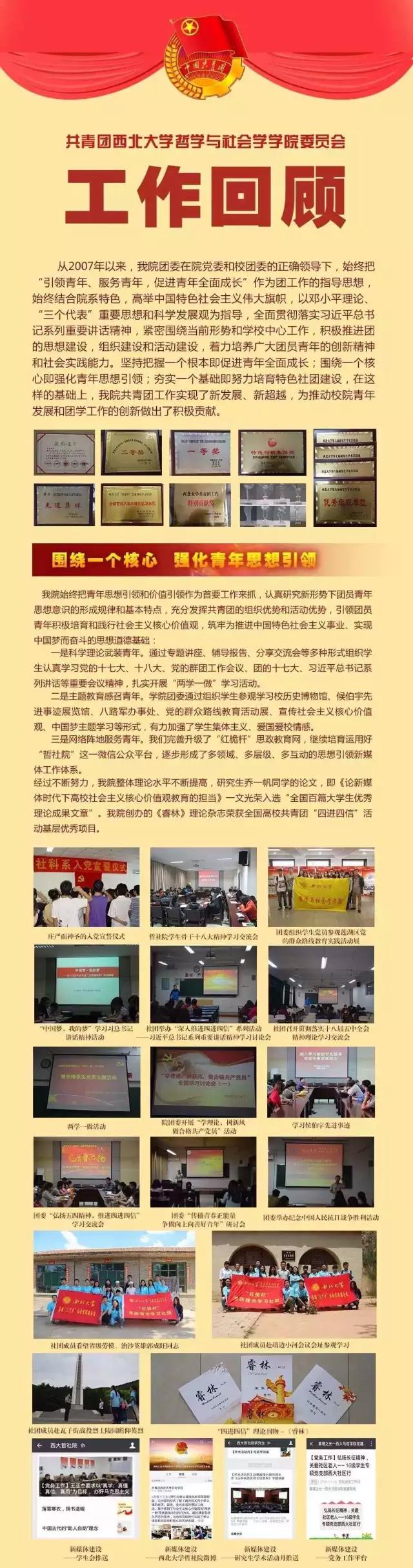 在共青团西北大学第二十次团代会召开之际,学校各基层共青团组织对近年来的工作进行了梳理和小结。让我们一起回顾共青团必赢242net官网(哲学与社会学学院)委员会的近年工作。