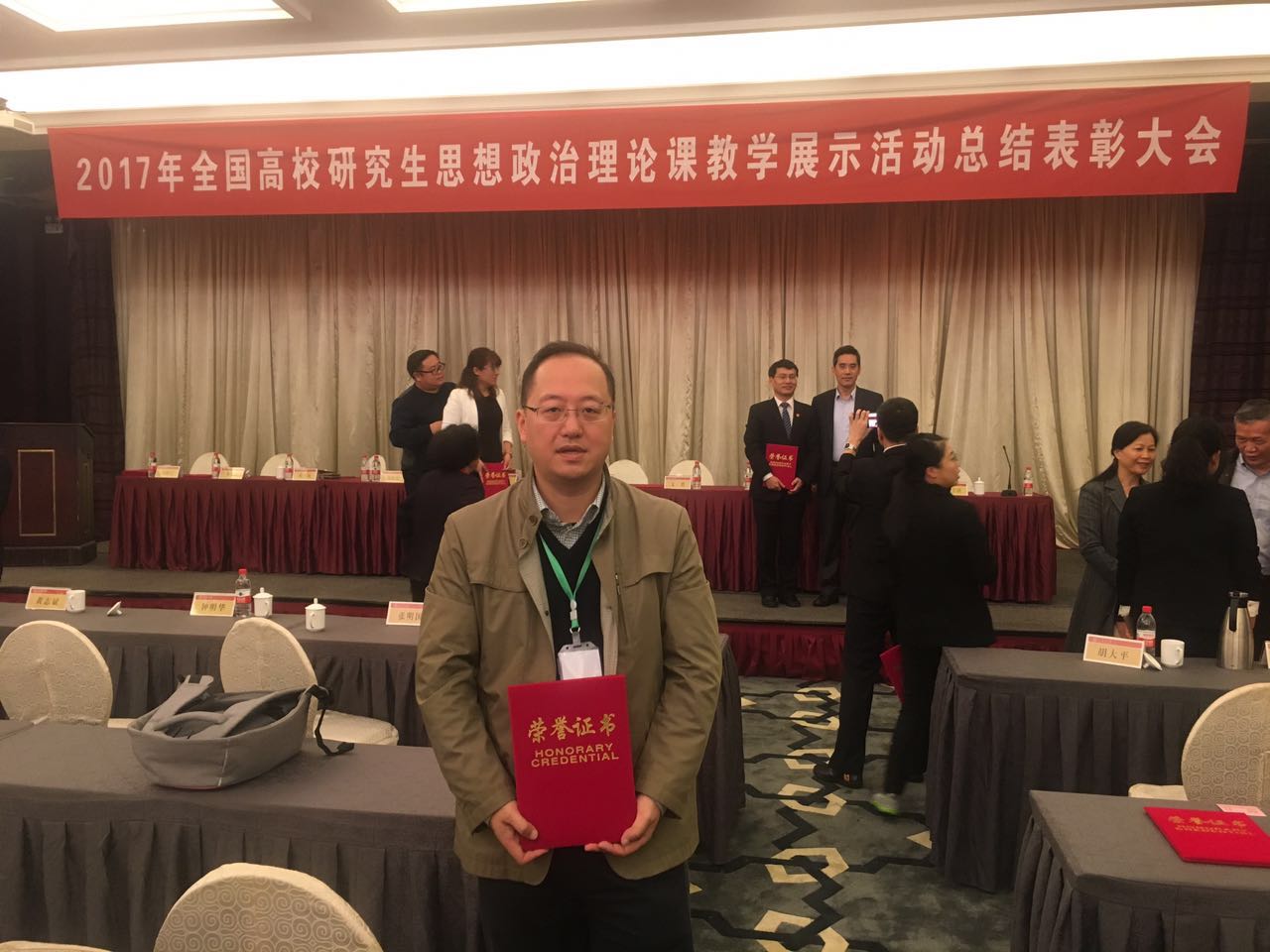 为学习宣传贯彻党的十九大精神,在研究生思政课教学中尽快体现党的十九大重大理论创新成果,进一步深化研究生思政课教学改革,根据《2017年高等学校思想政治理论课教学质量年专项工作总体方案》,在前期开展“2017年全国高校思想政治理论课教学展示活动”网络在线评审工作的基础上,教育部高等学校思想政治理论课教学指导委员会于10月27日至29日在山东大学、山东师范大学举办了2017年全国高校研究生思想政治理论课现场教学展示活动。我校马克思主义学院赵伟力老师作为研究生“自然辩证法概论”课陕西省唯一的代表参加了现场教学展示活动,以“自然辩证法概论”课目组总分全国第六名,被评选为“全国高校思想政治理论课教学骨干”。
