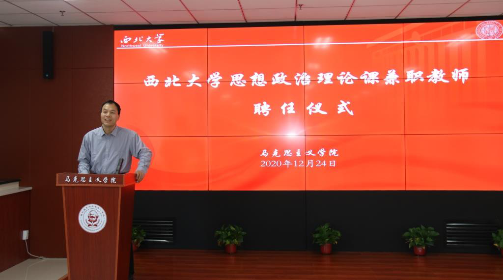 12月24日下午,学校思想政治理论课兼职教师聘任仪式在马克思主义学院学术报告厅举行。校党委副书记、马克思主义学院院长吕建荣、校党委常委、宣传部部长田明纲、党委教师工作部部长惠正强、学生工作部部长董国强、教务处处长曹蓉、研究生工作部部长李军、马克思主义学院党政班子成员及40名接受聘任的思想政治理论课兼职教师参加。聘任仪式由马克思主义学院常务副院长王强主持。
