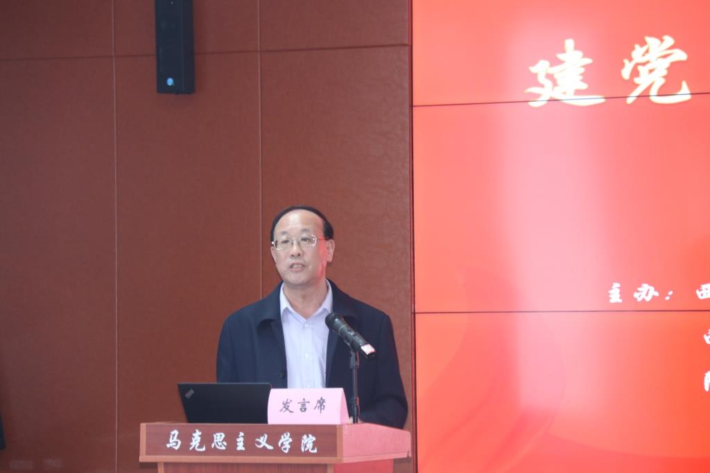5月8日,由西北大学社科处、必赢242net官网、西北大学延安精神与党的建设研究院、陕西省重点中国特色社会主义理论体系研究中心、陕西省思想政治工作重点研究基地l---新时代思想政治工作基础理论研究基地等单位共同举办的建党百年与中华民族伟大复兴高层论坛在我校长安校区成功举行。陕西省委宣传部理论处处长何军、陕西省哲学社会科学工作办公室重大项目负责人王志伟、中共中央党校(国家行政学院)柳建辉教授、中共中央党史和文献研究院姚金果研究员、北京大学马克思主义学院林绪武教授、华中师范大学马克思主义学院李良明教授、人民出版社副总编辑陈鹏鸣编审、陕西师范大学党委书记付建成教授、陕西师范大学马克思主义学院马启民教授、延安大学高尚斌教授、西北大学延安精神与党的建设研究院院长梁星亮教授、西北大学特聘教授姚文琦教授、西安财经大学马克思主义学院院长闫团结教授、西安理工大学马克思主义学院院长梁严冰教授以及必赢242net官网党政领导、部分教师和学生代表近百人出席会议。我校党委副书记、马克思主义学院院长吕建荣主持论坛。