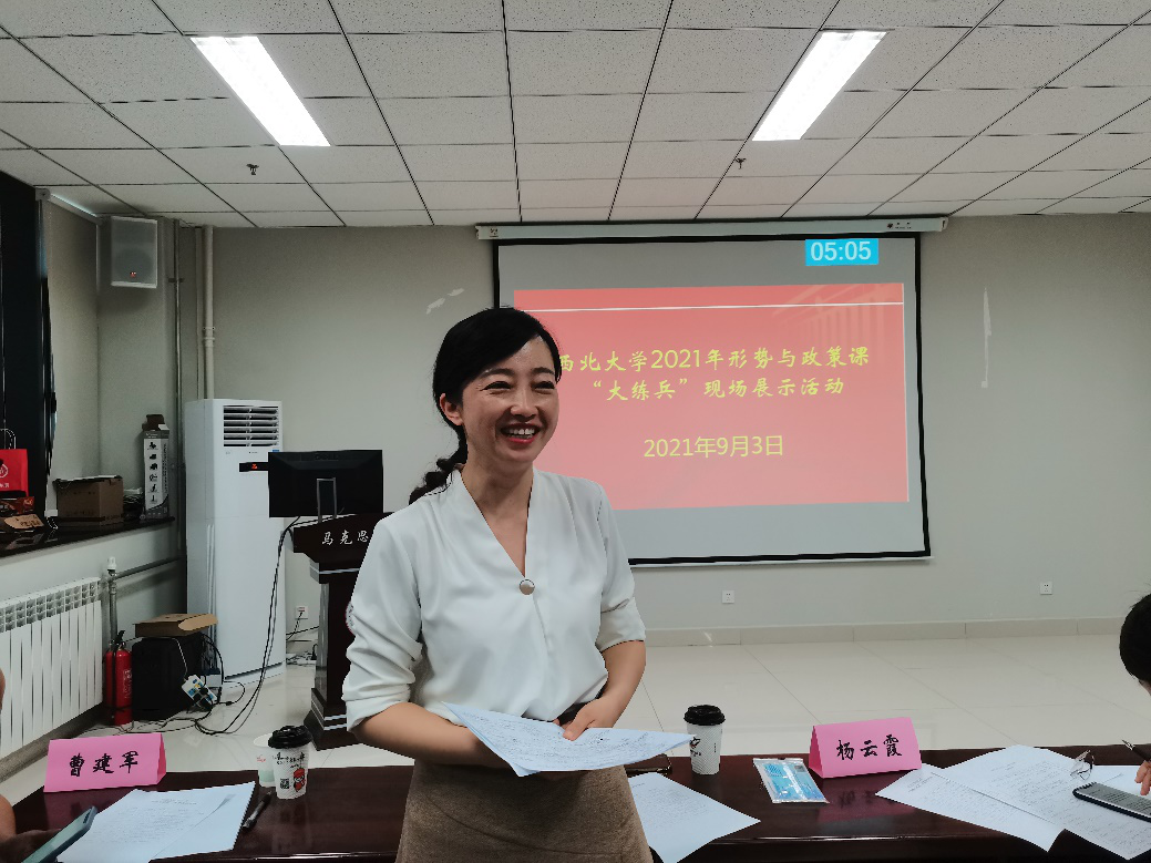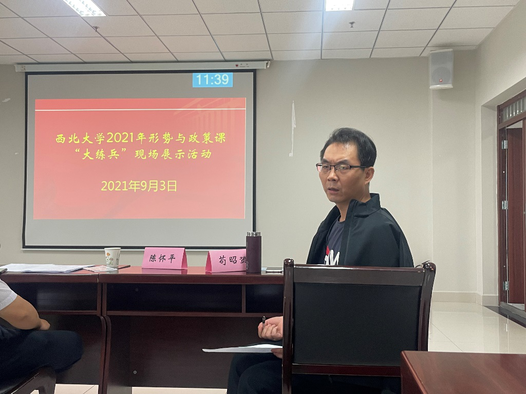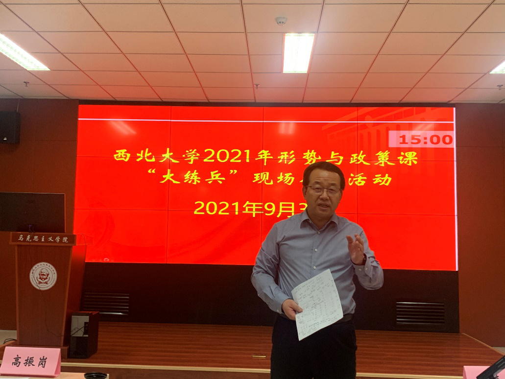我院于9月3日下午在西学楼学院报告厅和会议室举办了2021年西北大学形势与政策课“大练兵”现场展示活动,各个学院的辅导员参加了本次活动。本次活动评委由西安交通大学马克思主义学院院长燕连福教授、西北工业大学马克思主义学院院长杨云霞教授、长安大学马克思主义学院院长陈怀平教授、西安科技大学马克思主义学院院长高振岗教授、我校学工部部长董国强、校团委书记寇嘉和我院苟昭赟、赵沛、曹建军、齐钊等老师担任本次展示活动的评委,我院教学副院长李志松负责主持本次活动。