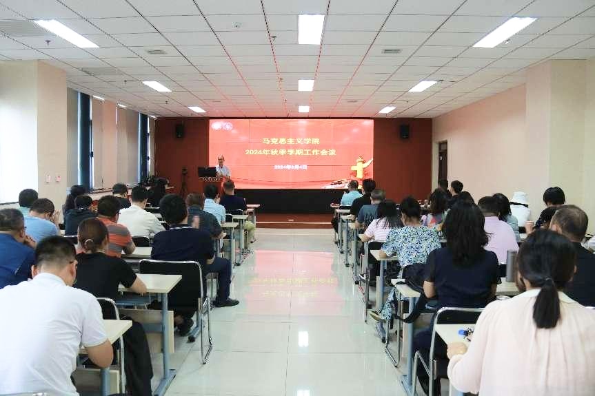 院党委书记韩凯峰以“抓党建、强引领,推动学院事业高质量发展”为题,对2024年春季学期党建工作进行总结,对秋季学期工作作出安排。他强调,要坚持“马院姓马,在马言马”的鲜明导向;要坚持党建引领,要以党风引领政风作风、师德师风、教风学风,在学院树立风清气正、干事创业的良好发展氛围;要坚持不懈狠抓干部队伍建设,不断强化学院班子履职尽责担当意识,压实分管工作和“一岗双责”,以良好的干部作风凝聚发展合力,推动学院事业高质量发展。并对全院思政课教师提出了三点希望:一是要心中有“念”,坚持以习近平新时代中国特色社会主义思想为指导,树牢理想信念。二是要胸中有“情”,用情、用心、用力讲好思政课。三是要肩上有“责”,切实扛起为党育人、为国育才的光荣使命。