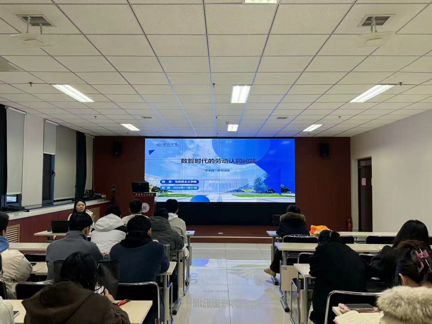 11月27日晚,“导师讲坛”第212讲在我院学术报告厅举行。我院王青副教授作了题为《数智时代的劳动认同问题》的学术讲座,学院2024级全体研究生参加。