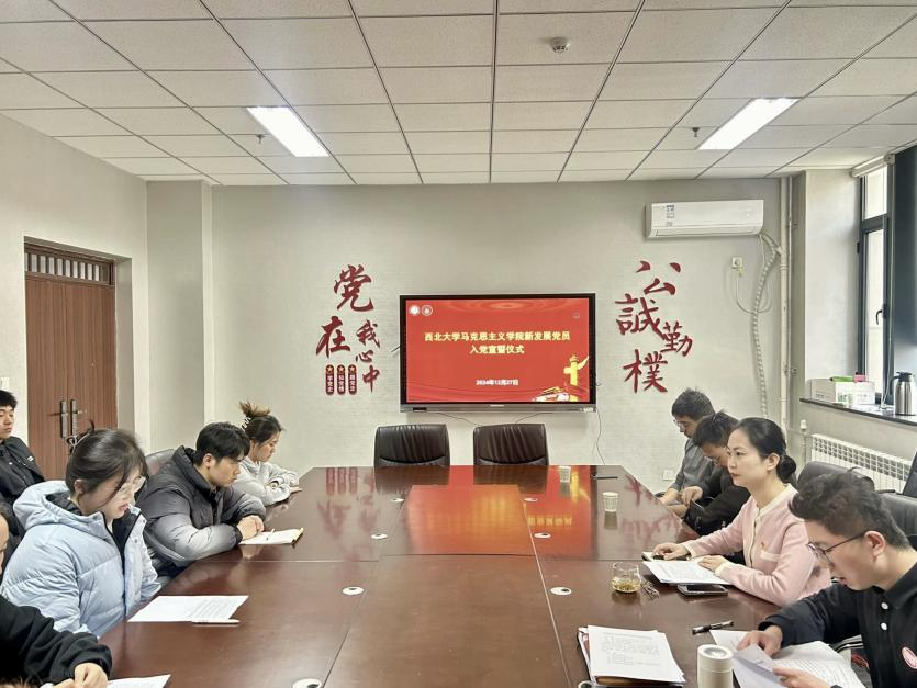 12月27日上午,我院在党建活动室举行新发展党员入党宣誓仪式。我院党委副书记邵平、马克思主义基本原理教研部党支部书记钟小浜、学生党支部书记以及全体预备党员参加仪式,仪式由我院党务工作人员主持。